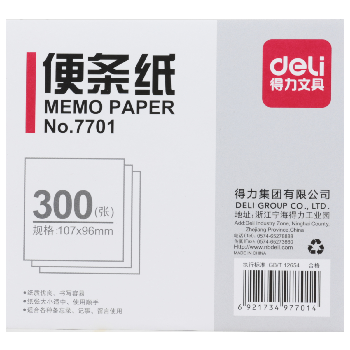 得力便条纸107*96mm(白)7701