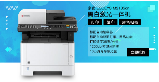 京瓷(KYOCERA) M2135dn黑白激光一体机(打印 复印 扫描 )