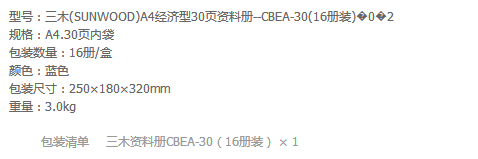 三木(SUNWOOD) CBEA-30 30页经济型资料册 蓝色 16册装 办公文具