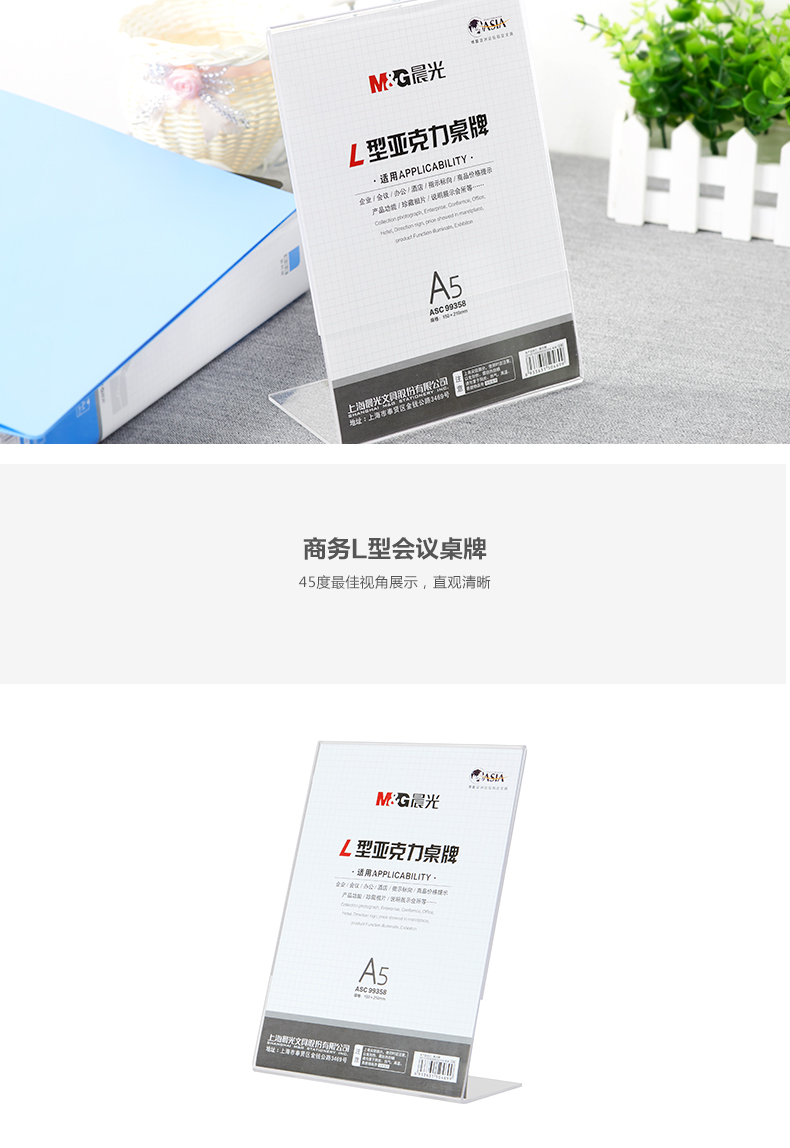 晨光商务L型会议桌牌A5(竖)ASC99358