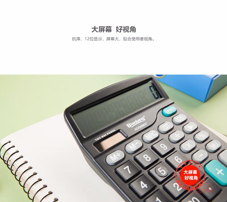 晨光(M&G)文具双电源计算器 太阳能桌面计算机12位大屏幕计算器 办公用品 单个装ADG98837